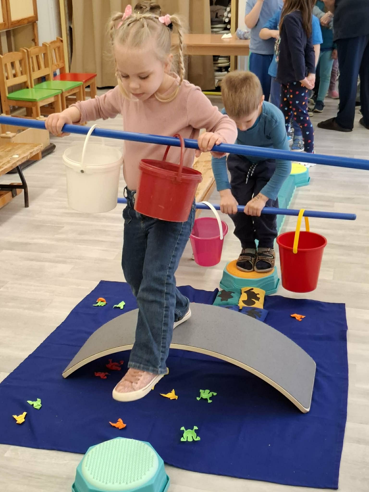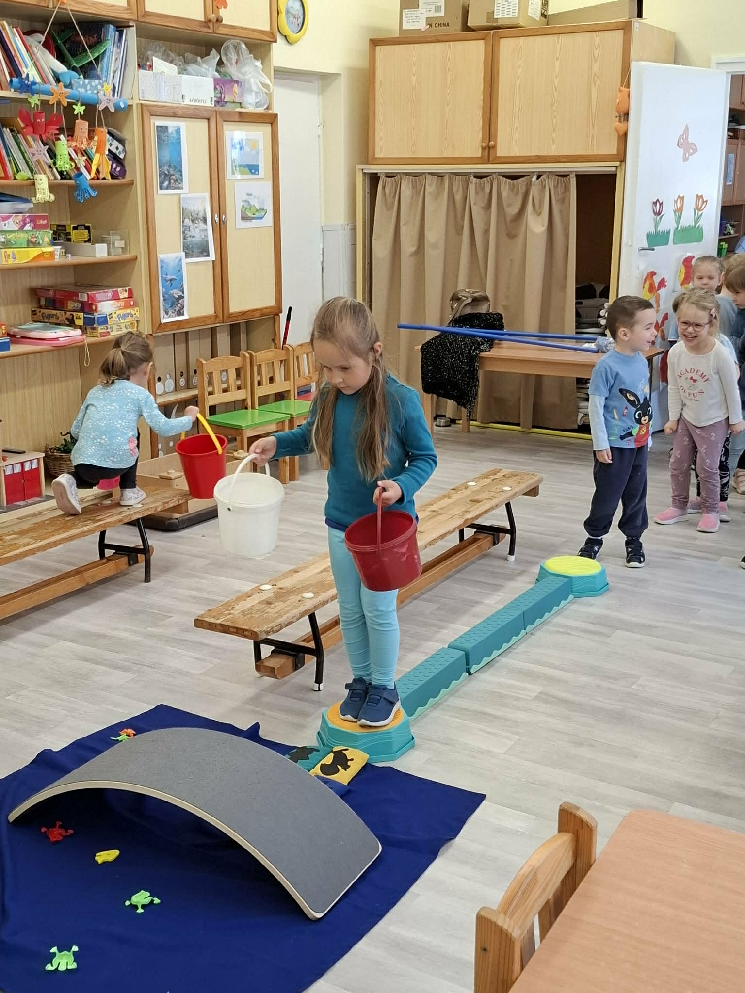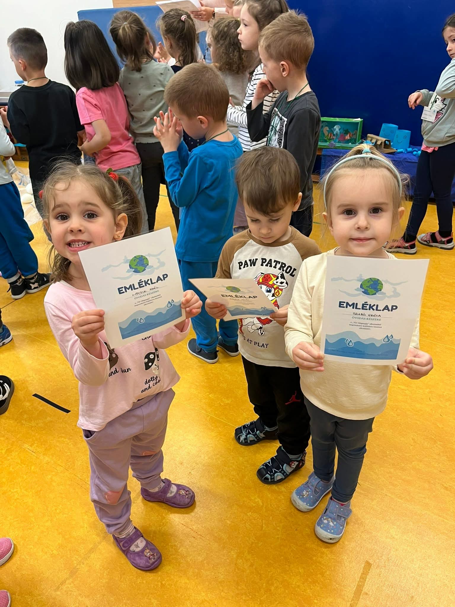 Vízzel kapcsolatos mozgásos és ügyességi játékokon vehettek részt a gyermekek. Otthon a szüleikkel víz témában készíthettek különböző tárgyakat és játékokat újrahasznosított anyagokból, melyet kiállítás keretében megmutathattak mindenkinek.